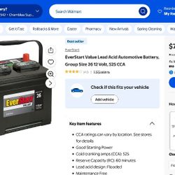 $50 EverStart 26 Automotive Battery$50Smyrna, GA