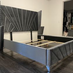 Cream Velvet- Modern California king Bed Frame ONLY$100Atlanta, GA