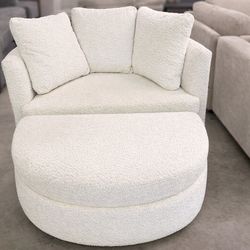 Holley Oversized Fabric Accent Chair with Storage Ottoman New, open box Modern Design with Boucle Textured Fabric High-Density Foam Seat Cushions Du$400Suwanee, GA