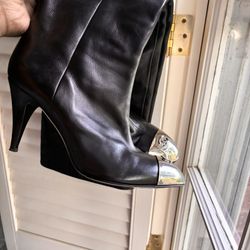 AUTHENTIC Black Leather CHANEL Knee-High Boots with Silver Cap Toe$700Loganville, GA