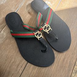 AUTHENTIC Gucci Black Sandals with Green and Red Web Strap and Gold Double G$200Loganville, GA