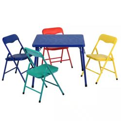 Page Color 5-Piece Folding Plastic Kids Square Table Top and 4-Chairs Set, Multicolor and Writing Desk Set$30Snellville, GA
