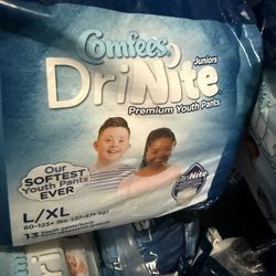 premium youth pants Juniors 12 Packs Of 13 Comfees Drinite L/XL 60 - 125 Lbs Pull Ups $48 12 packs for $48.00 24 packs for $96.00 12x 13=156 $48Powder Springs, GA
