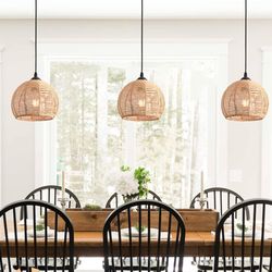 Natural Hemp Rope Triple Dome Pendant Light β Rustic Ceiling Fixture$50Smoke Rise, GA