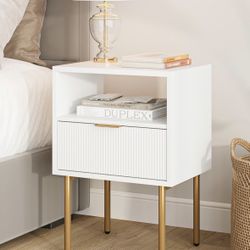 Nightstand,Mid-Century Modern Bedside Table with Storage Drawer and Open Wood Shelf,Small Gold Frame Side Table for Bedroom,Living Room,White (Set Of $100Atlanta, GA
