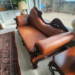 Vintage Empire Style Carved Mahogany & Leather "Fainting" Sofa$1,200Roswell, GA