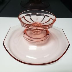 Pink Glass Flared Octagonal Chip & Dip Serving Bowl $45Duluth, GA