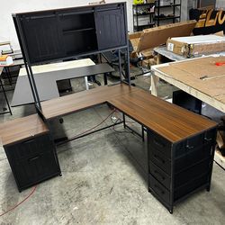 SEDETA Farmhouse L Shaped Desk with Drawers & Hutch, Home Office Desk with File Drawer & Sliding Barn Doors$120Duluth, GA