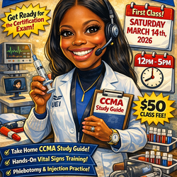 CCMA Exam Prep + Hands-On Skills Class (Phlebotomy, Injections)$50Tucker, GA