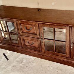 Traditional-Style MahMahogaTV Stand or Credenza Featuring Glass-Front Cabinets and Centered Drawers.$115Lawrenceville, GA