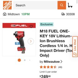 M18 Fuel Impact Drill Tool Only $180Kennesaw, GA