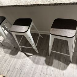 Set of 3 Industrial Metal Bar Stools w/ Wood Seats — White & Dark Wood$120Atlanta, GA