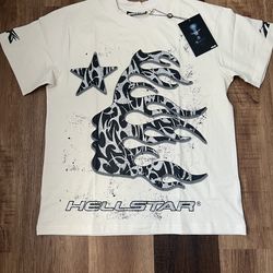 Hellstar white tee with black flames and stars$100Marietta, GA