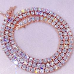 VVS1 MOISSANITE ROSE GOLD TENNIS CHAIN 5MM 24INCHES LONG