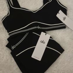 High-waisted black and white Alo Yoga leggings and sports bra set #yogalife$70Mableton, GA