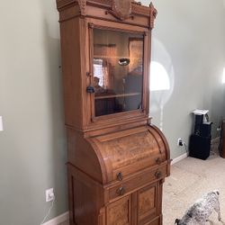 Antique Victorian Walnut Secretary Roll Top Desk with Glass Cabinet $1,500Doraville, GA
