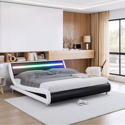 5442 Upholstered Queen LED Bed Frame with Headboard, Modern Low Profile Platform Bed with Strong Slats Support, Faux Leather Wave-Like Bed Frame, Easy$150Gillem Enclave, GA