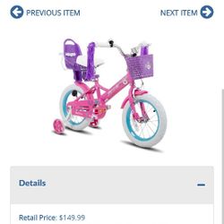 Lot # WB0657: JOYSTAR Kids Bike Little Daisy 16 Inch Girls Bike with Training Wheels Doll Bike Seat Basket Streamers Princess Kids Bicycle for Girls T$70Douglasville, GA