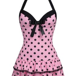 Pink 1940s Halter Polka Dots Bow One-Piece Swimsuit