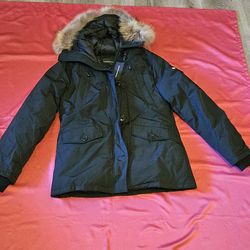New Women's Alessandro Dell'Acqua Dark Navy High-End Raccoon Fur Hooded Coat Size L (NEW WITH TAGS)$200Powder Springs, GA