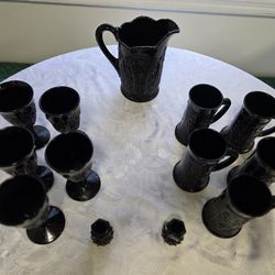 Rare Vintage Indiana Monarch Tiara Daisy Pattern Pitcher amethyst pressed milk black glass 13 PC set$350Lilburn, GA