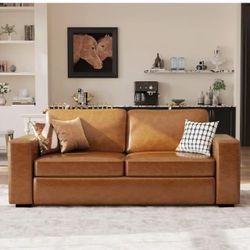 💞 ABCASA 85" Faux Leather Couch with Padded Cushions, Mid-Century Modern Sofa with Extra Deep Seats, 3-Seater Sofa Couch for Living Room Apartment Lo$220Gillem Enclave, GA