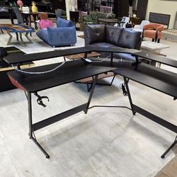 SHW L Shaped Gaming Desk with Full Around Monitor Stand , Black