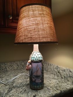 Nautical light lamp from wine bottle with netting seashells and sailboat picture$50Canton, GA