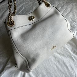 COACH Pebbled Leather Chain Turnlock Shoulder Tote – Chalk$150Johns Creek, GA