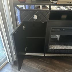 YESHOMY Glass Fireplace TV Stand for Televisions up to 65", Media Entertainment Center Console Table with Doors Closed Storage, Black 《⚠️ no come wit$150Dunwoody, GA
