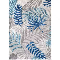 Tropics Palm Leaves Gray/Blue 9 ft. x 12 ft. Indoor/Outdoor Area Rug$100Doraville, GA