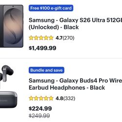 Samsung Galaxy S26 Ultra 512 Gb With Buds Pro 4 Just 1300$1,300Atlanta, GA