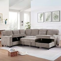 💥Brand New Beige U Shape Sectional Sofa With Pull Out Bed, Cup Holders + Charging Ports + Storage Space $799Atlanta, GA