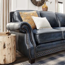 Beautiful Navy Blue Leather Loveseat Sofa Chair Nailhead Trim, Rolled Arms MCM Chesterfield$300Atlanta, GA