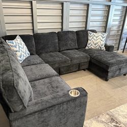 π Brand New Grey Huge U Shape Sleeper Sectional Sofa With Pull Sleeper Bed, Cup Holders, Charging Ports & Storage Space | Pay After Delivery π$799Atlanta, GA