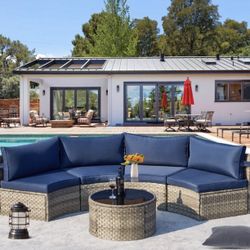 7 Pieces Outdoor Patio Half Moon Furniture Set, PE Wicker Sectional Furniture, Meeting Sofa Set with Tempered Glass Round Table, Side Table, Padded Ba$660Brookhaven, GA