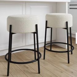 Isaac 24 in. Boucle White Backless Metal Counter Stool with Boucle Upholstered Seat Cushion and Metal Frame, Set of 2 - Brand New$105Rex, GA