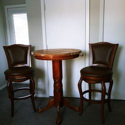 Bistro Table and Swivel Bar Stool Set Real Wood and Leather$500Stone Mountain, GA