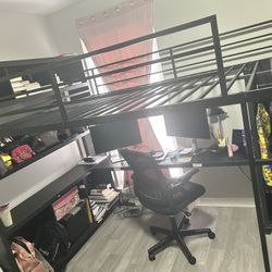 Queen Size Loft Bed w/ Built-In Desk & Shelving – Black Metal$200Atlanta, GA