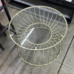Modern Glass Coffee Table with Gold Wireframe Base, Round Tempered Glass Table Top$140Duluth, GA