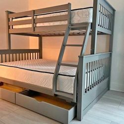 WARM GRAY TWIN OVER FULL BUNK BED WITH STORAGE!!$675!