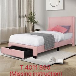 Twin Modern Wingback Upholstered Platform Bed with Footboard Drawer and Pockets(4011)(missing instructions)$90Duluth, GA
