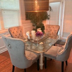 Vintage Postmodern Glass Top Dining Set – Table + 4 Velvet Chairs – Complete Set$700Austell, GA