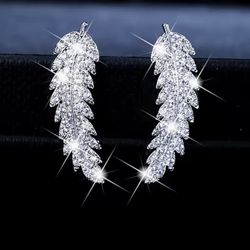 Elegant Feather / Leaf Shaped Earrings Silver Full of Shiny Crystals Stud E21$15Hephzibah, GA