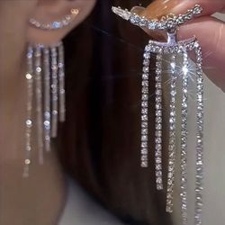Dazzling Tassel Earrings Full of Shiny Rhinestones Stud Silver Gift Jewelry E24$17Augusta, GA