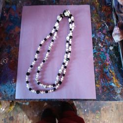 Vintage Beaded Necklace Black And White 18"$14Wrens, GA