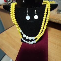 Yellow And White Beaded Necklace And Earring Set$10Phenix City, AL