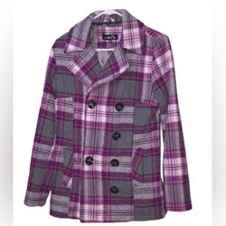 Rue21 like new pink/fuscia/grey plaid wool coat size M$20Columbus, GA
