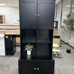 67” Tall Freestanding Storage Cabinet, Black Wooden Organizer with 4 Doors & Adjustable Shelves, Perfect for Kitchen, Bathroom, Bedroom or $100Sugar Hill, GA