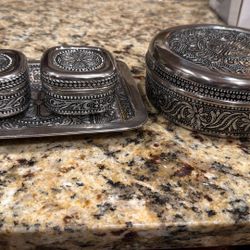 Vintage India Detail Hand Chased Silver On Copper Square Footed Dish And Container - OBO$20Alpharetta, GA